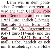 Quelle NZZ 26. Mai 2017 S 30 Internationale Ausgabe ▪ Den Steuerzahler als "Arbeitgeber" kostet ein Nationalrat insgesamt 147.000 Franken und ein Ständerat 174.000 Franken pro Jahr. ▪ Für die Beschäftigung eigener Mitarbeiter erhält ein Parlamentarier eine Jahrespauschale von 33.000 Franken. ▪ Hat er keine(n) Mitarbeiter oder gibt er für Mitarbeiter weniger aus, verbleibt das Geld ihm. ▪ Nationalratsmitglieder ohne eigene Mitarbeiter verdienen im Mittel 91.900 Franken pro Jahr, jene mit eigenen Mitarbeitern 63.000. ▪ Im Ständerat liegt das Gesamteinkommen mit 92.200 Franken bzw. 69.300 Franken in einem ähnlichen Bereich. |
