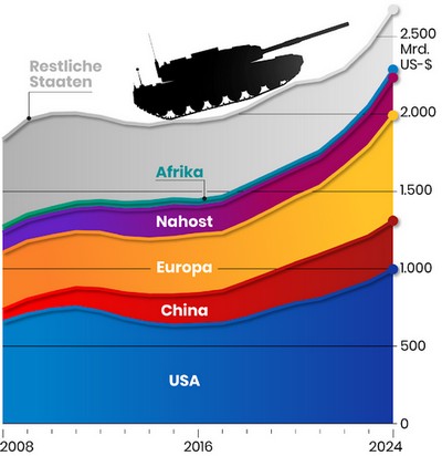 2021 weltweit: >2.000 Mrd. $: Quelle SIPRI Rüstungsausgaben